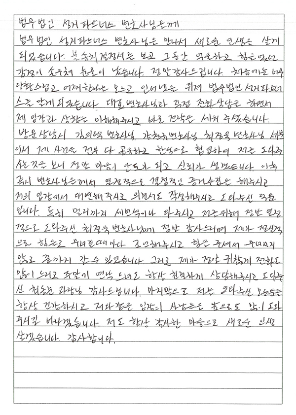 저의 입장에서 대변해주시고 의견서도 작성해주시고 도와주신 덕분입니다.