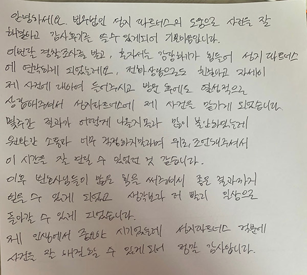 사건을 잘 해결할 수 있게 되서 정말 감사합니다.